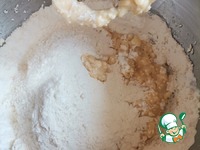 Добавляем просеянную муку и разрыхлитель теста. |
