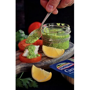 Описание: Это не классический соус песто, но такой вариант тоже имеет место быть. Универсальный соус станет дополнением к чему угодно: мясу или рыбе на гриле, печёному картофелю, бутербродам, овощам... Да и просто с хлебом вкусно!
