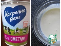 Для приготовления заливки использую сметану ТМ «Искренне Ваш». Сметану и сгущенное молоко соединить, перемешать. |
