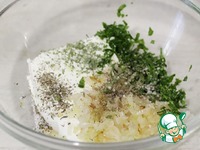 К творогу добавить пассерованный лук, мелко нарезанную петрушку, мяту, соль, перец и тимьян. Хорошо перемешать. |