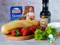 Ягоды клубники разрезать пополам или слайсами, выложить на сыр. Полить тосты бальзамическим кремом с медом, украсить листьями салата или базилика. |