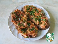 На ломти хлеба выложить яичницу, посыпать зеленым луком и укропом. |