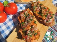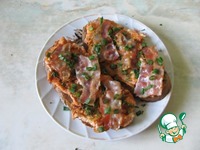 Сверху выложить кусочки бекона и еще посыпать зеленью. |