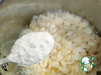 Введите муку. Прогрейте, около 30 секунд. |