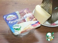 2. Полутвердый сыр натираем на мелкой терке. Можно взять плавленный мягкий сыр в баночке. |