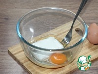 3. Творог смешиваем с яйцом и взбиваем вилкой. |