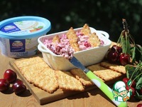 Описание: У нас пора черешни и я хочу угостить вас чудесным дипом - сливочным, с ароматом черешни, чуть солоноватым, но вместе с тем, и медовым вкусом, дип идеален с сырными крекерами и белым вином, отлично подать с обжареным тостом или багетом, нравится детям. Пробуем?