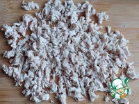 Отварное куриное филе мелко нарезать. |