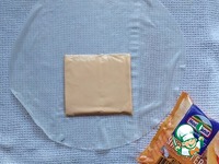 Переложить его на влажное полотенце. Ближе к низу рисового листа положить пластину плавленого сыра. |