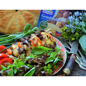 Описание: И сколько бы не было вкусного на пикнике, мясное всегда встречается на "Ура!". Предлагаю вариант несложного, но довольно яркого на вкус и по виду мясного блюда. Свиная шейка с ломтиками помидоров, колечками лука и ломтиками подтаявшего сыра. Ммммм...
