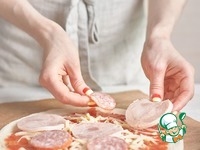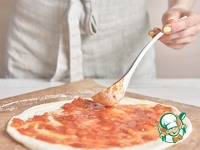Посыпать тертым сыром. Это поможет удержать начинку на пицце- сыр расплавится и выступит в роли клея. |
