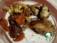 Если выкладываете порционно, то постарайтесь, чтобы в каждую тарелку попали, помимо утки, все овощи, что были в котле. Хоть понемногу…, но все! |