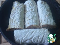 Сверните рулетом, разрежьте по полам (если не помещаются в форму). Сложите в форму для запекания |
