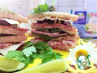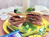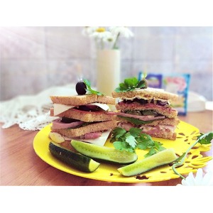 Описание: Если делать сэндвич с хлебом, то от открытого бутерброда он будет отличаться лишь тем, что сверху накрывается вторым кусочком хлеба. Сэндвич может состоять из одного, двух и более слоев. Их можно готовить с большим количеством ингредиентов: колбасы; ветчины; различного мяса; омлета; сыра; зелени; салата; различных соусов и т д... Такой закрытый бутерброд является более сытным за счет увеличения количества мучного. Это также "домашний" вариант, который можно украсить чем вы захотите. На природе - незаменимый вариант еды для "оголодавших". Как известно, солнце, воздух и вода разыгрывают аппетит!