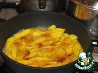 Манго нарезать дольками. В сковородку (без ручки) либо форму, на которой можно жарить, положить манго, сливочное масло, корицу и сахар. Припустить минут 5, пока не карамелизируется. |