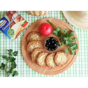 Тесто разделить на 8 частей, выложить на силиконовый коврик, с помощью столовой ложки сформировать лепешки, толщиной около 5 мм, сверху посыпать сыром. |