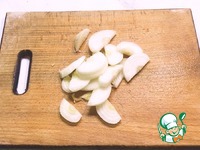 После чего лук нарезаем полукольцами. |