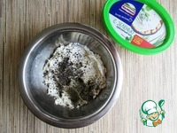 Для начинки смешать творожный сыр (у меня с зеленью, ТМ Хохланд) с сушеной мятой и базиликом. |