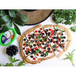 Описание: Тарт фламбе в средиземноморском стиле - оригинальная закуска для пикника! «Фламбе» или «пылающий» потому, что традиционно такой тарт готовится на открытом огне, «в языках пламени», буквально за считанные минуты. За неимением открытого огня - у меня духовка, но на пикнике традиции можно осуществить. Сначала выпекается хрустящий цельнозерновой корж с тмином, затем покрывается нежной начинкой из творожного сыра, дополняется маслинами, сладким перцем и свежей зеленью. Получается быстро, вкусно, полезно и ароматно. Попробуйте!