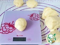 Подошедшее тесто обмять, разделить на 8 равных частей. Каждую часть подкатать в колобок. |