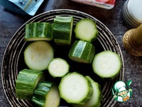 Я нарезала кабачок с меньшей стороны. Кружочков кабачка потребуется больше, чем мяса. Он будет сначала шампура и в конце. |
