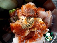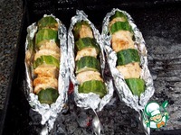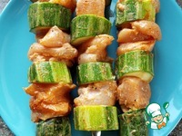 Описание: Пока кабачки "молоденькие" и их можно готовить со шкуркой, захотелось приготовить с ними шашлык. В качестве мяса, выбор пал на куриное филе. Упрощать не стала и завершила приготовление, шикарной ноткой, посыпав ароматным сыром. Кулинарный эксперимент вызвал бурю восторгов. Курица и овощ, обменялись соками, а сырная "шапочка" дополнила нежный шашлык. Такой шашлык можно подать и на пышный банкет.