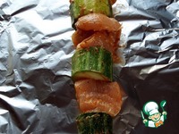 Нанизать, чередуя кусочки и кружочки, на шампуры. |