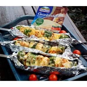 Надо, спустя минут 15, заглянуть под фольгу. Я делала так пару раз, как кабачок будет хорошо протыкаться, можно раскрывать фольгу. |