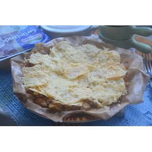 Для того чтобы фарш в готовой запеканке не рассыпался, в конце тушения хорошо добавить 1 ч. л крахмала или в слегка остывший тушеный фарш добавить сырое яйцо.