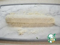 Замесите тесто, скатайте колбаской. |