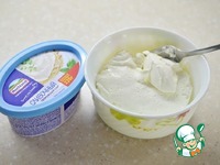 Смешайте творог с творожным сыром. |