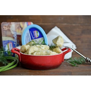 Описание: Запеченные ленивые вареники с чесночными стрелками с ароматным сливочно-сырным маслом - блюдо, которое очень просто готовится и обладает интересным и пикантным вкусом. Таких вареников вы еще не пробовали. Запеките их в большой форме или в порционных формочках и возьмите на пикник.