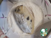 Формируем котлету с начинкой внутри, хорошо склеивая края и панируем в муке. |