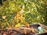 Разжечь мангал. Соблюдайте технику безопасности! Сначала можно пожарить мясо, овощи, а креветки оставить напоследок, им нужно совсем немного жара. |