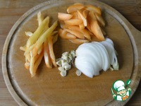 Сверху овощей кладём маринованную рыбу. |
