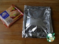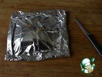 После приготовления, осторожно (пар обжигает!) делаем на фольге крестообразный разрез, заворачиваем красиво уголки фольги. |