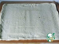 Раскатать одну часть теста в прямоугольник размером 32х36 см на бумаге для выпечки. |