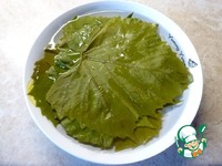 Сложить стопкой в глубокую миску и залить кипятком. Оставить на 5-7 минут. Листья изменят свой цвет с ярко-зеленого на хаки и станут мягкими. |