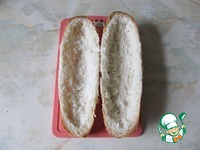 Багет разрезать вдоль пополам и вынуть мякиш. |