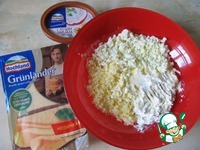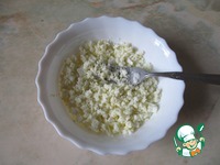 Добавить размягчённое масло, сливочный сыр и натёртый на мелкой тёрке полутвёрдый сыр. Посолить и приправить сухими травами и перцем. Хорошо перемешать. |