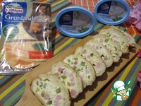 Запечь в разогретой до 180 градусов духовке 15 минут. Остудить до комнатной температуры, убрать в холодильник на 8-10 часов или на ночь. Охлаждённый багет развернуть. |