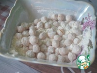 Небольшими частями обваляйте нут в муке. |