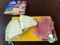 Мясо и капусту нарезать кусочками, толщиной около см. (чуть меньше). Капусту я нарезала кругом и делила на 4 части. |
