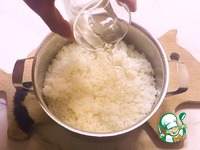 Потом в рис заливаем рисовую заправку, перемешиваем и оставляем остыть. |