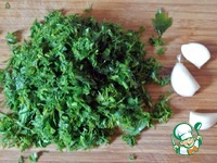 Каждый надрез заполнить зеленью с чесноком. Часть оставить. |