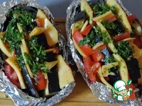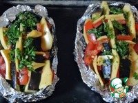 Описание: Я очень люблю баклажаны, поэтому даже пикник на природе ну никак не мог обойтись без них. Запекала баклажаны в алюминиевой фольге, сверху тоже закрыла фольгой. В таком виде можно разогреть их на мангале и есть, а можно и переложить на тарелки. Хорошо подойдет к шашлыкам.