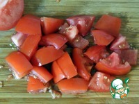 Помидоры разрезать пополам, вырезать плодоножку. Нарезать. |