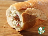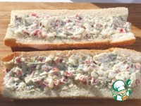 Разрезать багет на две половинкию Убрать часть мякиша. |