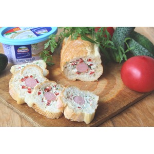 Плотно завернуть багет в пленку и убрать в холодильник. |
