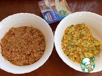 Таким образом мы подготовили фарш и овощную начинку. Разделите фарш и начинку на 7 - 8 равных частей. Теперь можно приступать к формированию зраз. |